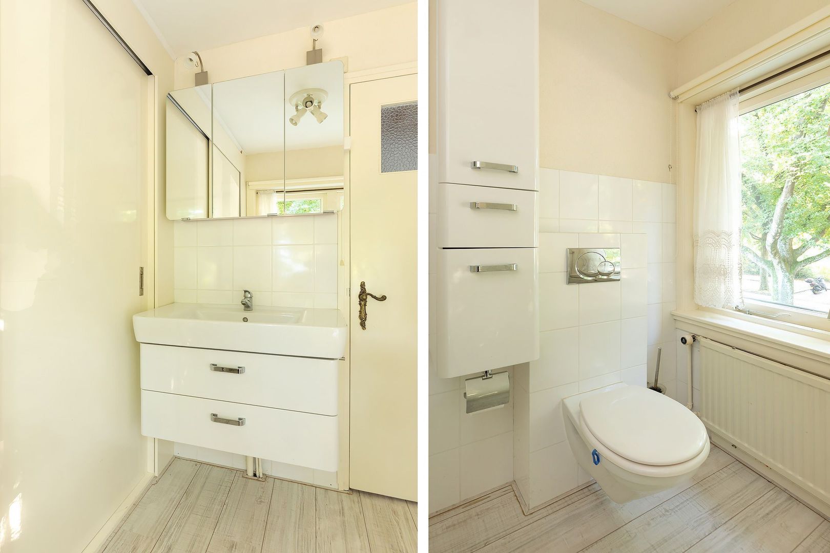 Overloop, slaapkamer aan de achterzijde met vaste kast en wastafel, 2e slaapkamer aan de achterzijde met wastafel, de 3e slaapkamer aan de voorzijde. Badkamer met 2e toilet, vaste kast en wastafelmeubel.