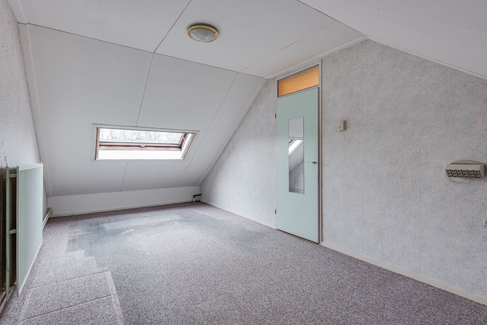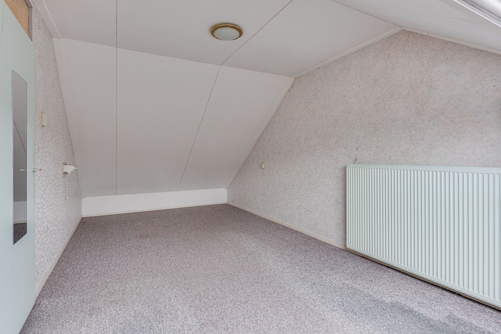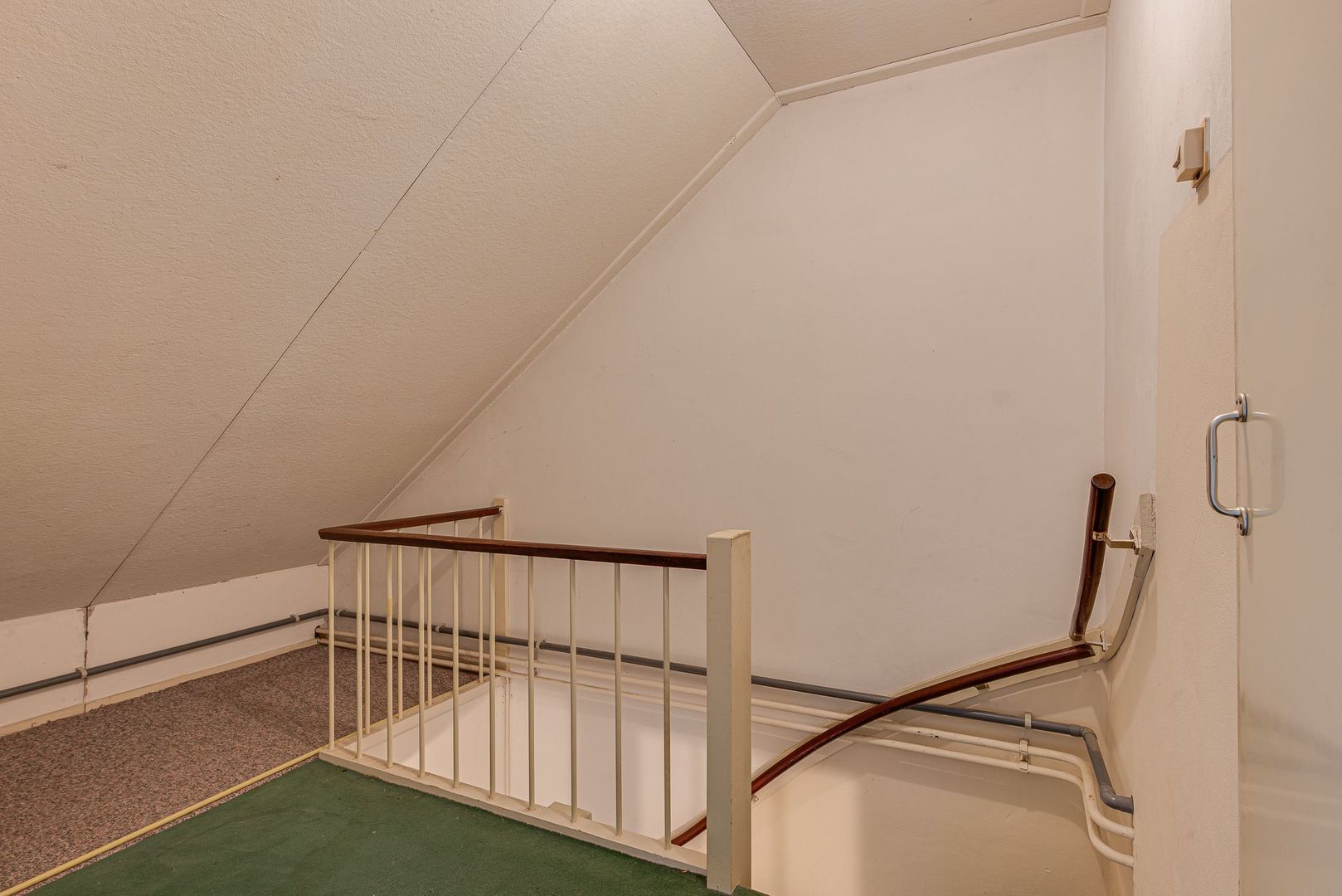 Vaste trap naar zolderverdieping: voorzolder, afgesloten berging met bergruimte en opstelling C.V.-combiketel, ruime 4e slaapkamer met dakraam.
