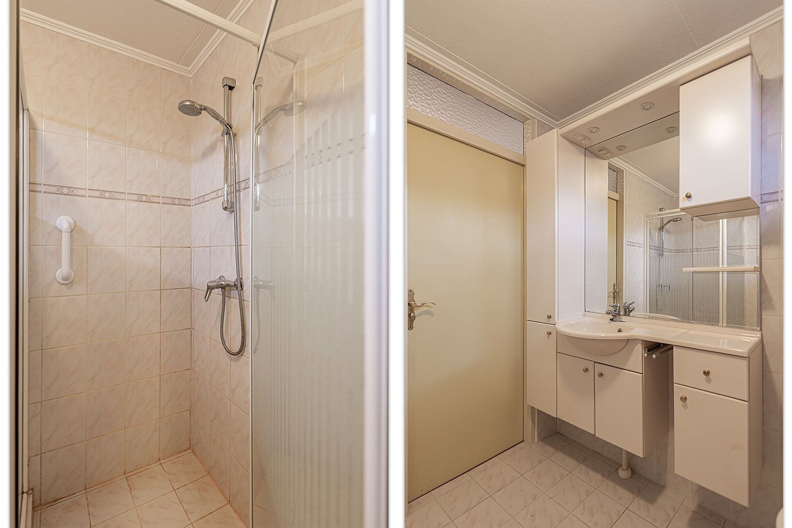 1e verdieping: overloop, hoofdslaapkamer, 2e slaapkamer, 3e slaapkamer met vaste kast, royale badkamer v.v. douche, wastafelmeubel en 2e toilet.