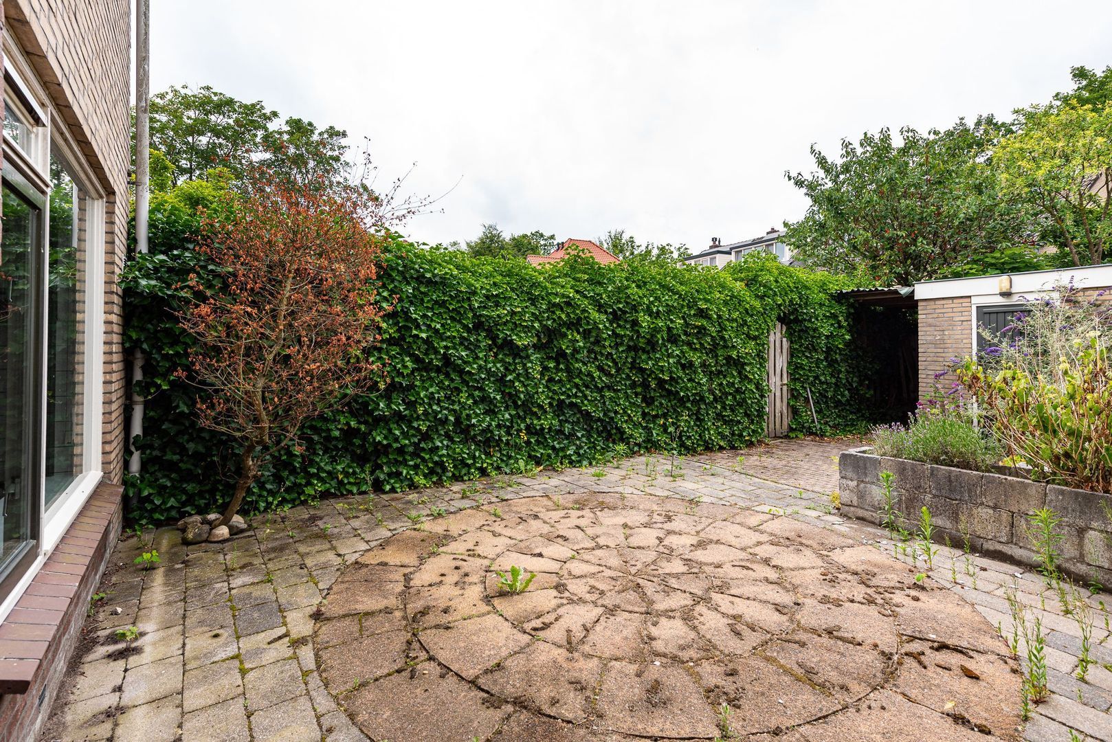- diepe achtertuin op het noordwesten met achterom