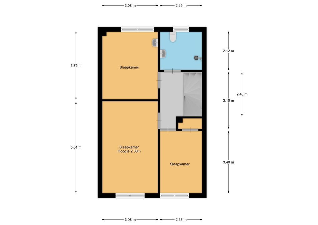 Overloop met toegang tot drie royale slaapkamers. De kleinere slaapkamer aan de voorzijde beschikt over een inbouwkast en de slaapkamer aan de achterzijde heeft een eigen wastafel. De badkamer is uitgerust met een douche, wastafelmeubel en toilet.