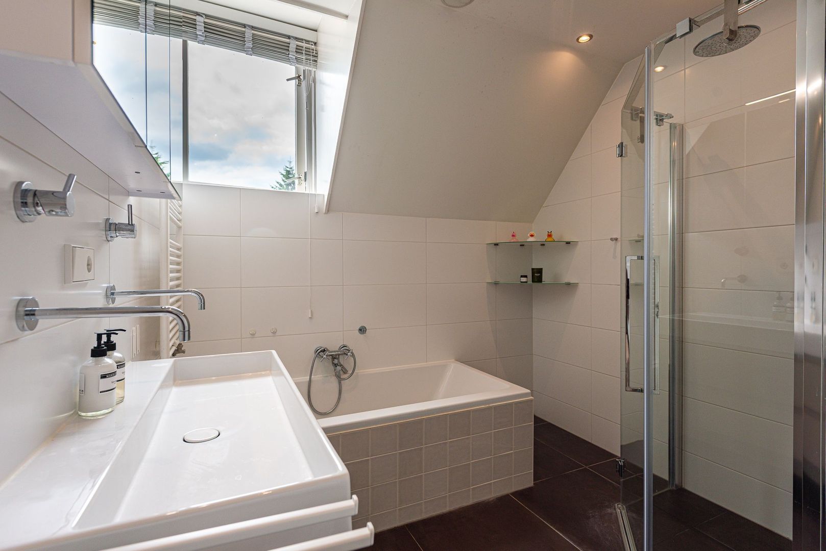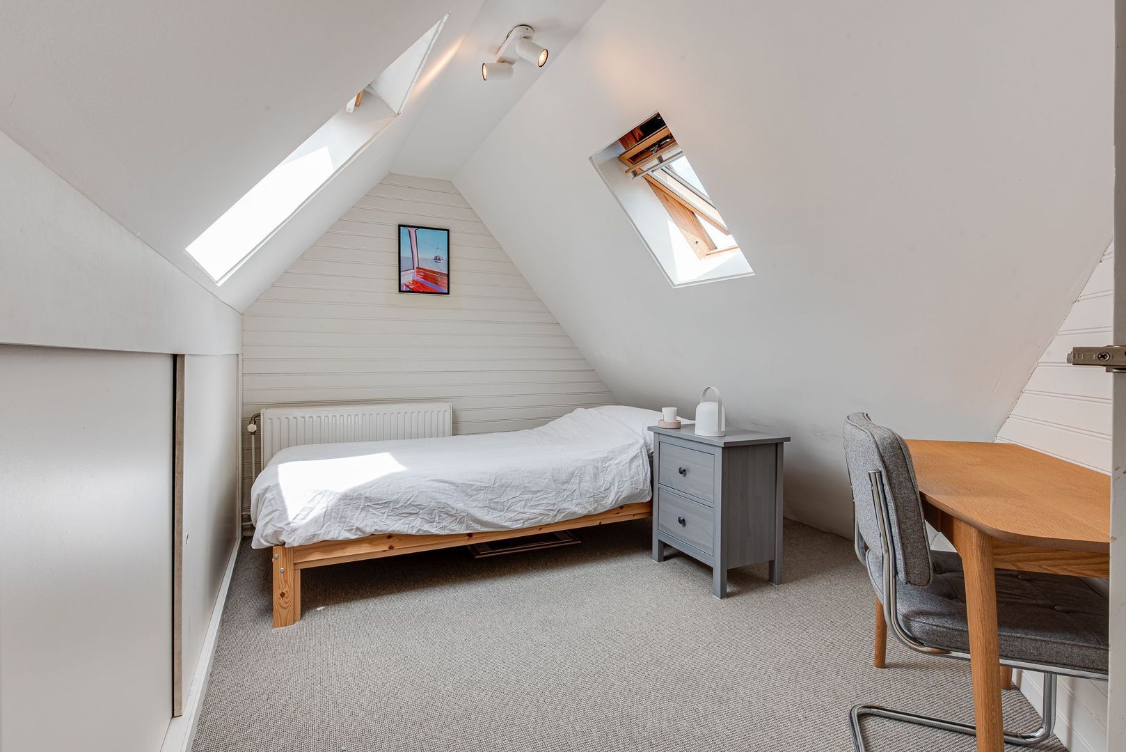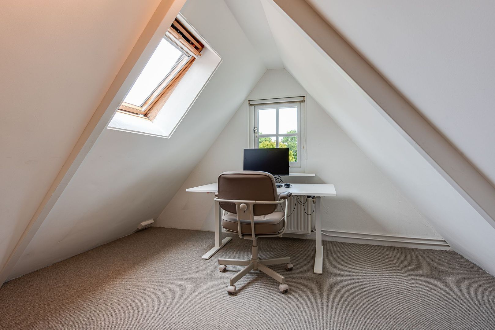 Overloop, opstelling gas-c.v.-wandketel, (HR, 2019) en MV-box, 3e slaapkamer met dakraam en raam in topgevel, 4e slaapkamer met 2 dakramen.