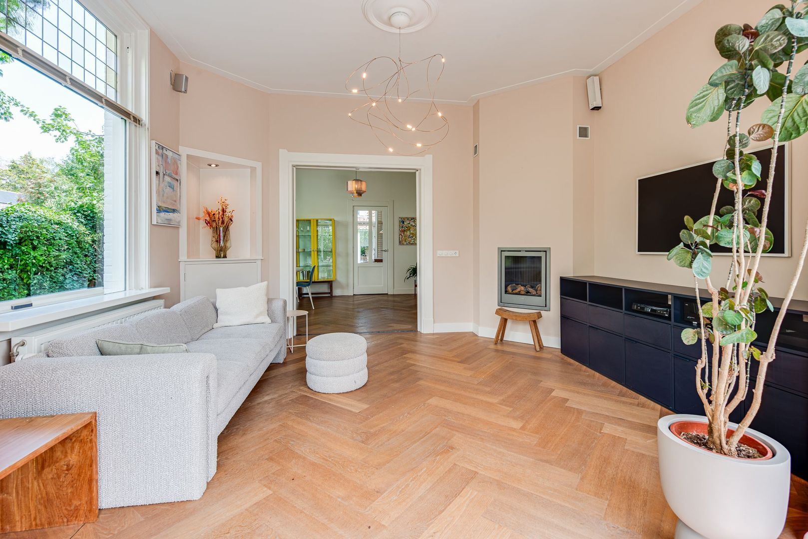 Symbolisch voor de renovatie is dat ook de elektrische installatie is vernieuwd. Een van die schaarse woningen die je bij binnenkomst meteen “omarmt” en zonder verbouwing of renovatie betrokken kan worden!