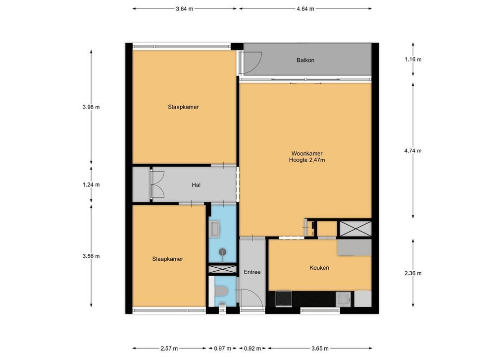 Via de tussenhal met inbouwkast toegang tot de twee slaapkamers en de badkamer. Slaapkamer aan de achterzijde met toegang tot het balkon en tweede slaapkamer aan de voorzijde. Badkamer (2018) voorzien van wastafelmeubel, inloopdouche en mechanische ventilatie.