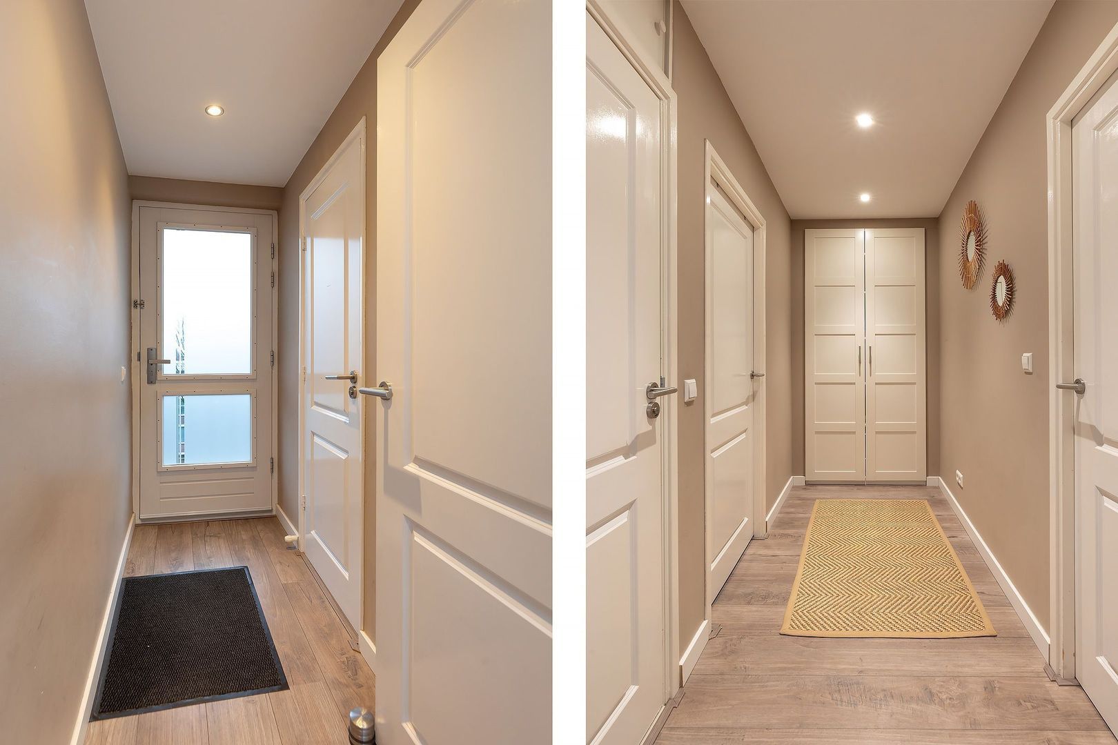 Entree, hal met toegang tot het separaat toilet (2018) met fonteintje. Lichte woonkamer met meterkast en grote schuifpui naar het balkon op het zuidwesten. Halfopen moderne keuken (2018) voorzien van diverse inbouwapparatuur, vloerverwarming en opstelling voor wasmachine en droger. Het gehele appartement is voorzien van een laminaatvloer (2018), met uitzondering van de badkamer, het toilet en de bijkeuken.